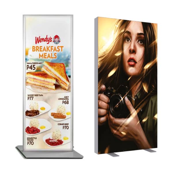 Hochwertige Druckoptionen auf Spezialgewebe aufgebracht und optional hinterleuchtet. Es bietet passende Sonderlösungen. Mit der Silikondichtung, die den Stoff umgibt, lässt er sich leicht in den Kanal im Profil legen und es wird eine perfekte Spannung auf der Stoffoberfläche erreicht. Bei Lightbox-Produkten ist die Wirkung doppelt so hoch Der verwendete Stoff erfüllt die DIN 4102-Normen für Anti-Falten- und B1-Flammbeständigkeit.